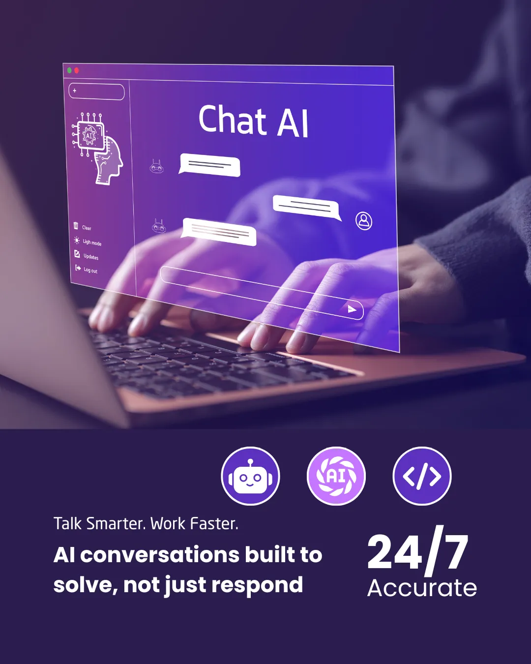 Click the chat icon at the bottom right corner and ask anything. It’s active 24/7 and ready to show off.